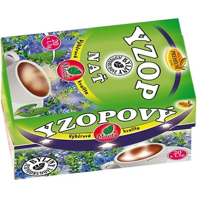 Yzop lékařský nať 30g(20x1,5g) (Český text na obalech) Nařízením EU je zakázáno uvádět na obalu výrobku jakékoliv zdravotní účinky. Více informací o zdravotních účincích byliny...