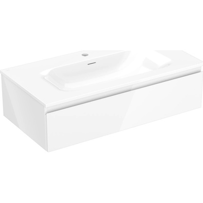 Specifikace produktu: Rozměry skříňky: Šířka: 90 cm Hloubka: 46 cm Výška: 23,5 cm Barva korpusu: Bílý lesk Materiál korpusu: Lakovaná deska Barva čela: Bílý lesk Materiál čela: Lakovaná MDF deska Struktura čela: Hladká Počet zásuvek: 1 Prostorná zásuvka s funkcí...