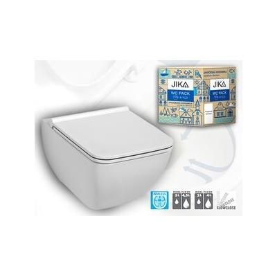 JIKA DINO PACK RIMLERSS bílá WC mísa závěsná bez oplachového kruhu včetně duroplastového sedátka Zeta se zpomalovacím mechanismem SlowClose s plastovými úchyty. Set obsahuje:...