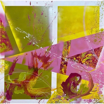 Prodej abstraktně malovaného obrazu na plátně. Barvy přináší veselou paletu zelené, růžové a žluté do abstraktního obrazu. Tyto odvážné a živé barvy spolu tvoří zářivý výjev,...