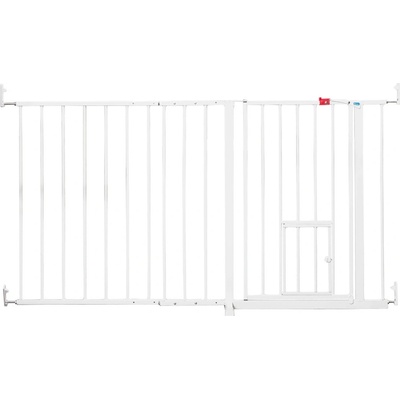 Speciální dveřní zábrana pro psy s integrovanými průchozími dvířky pro kočky a jiná malá zvířata. Velikost: šířka 75 - 84 cm, výška: 107 cm. Vhodná pro dveře či otvor o min....