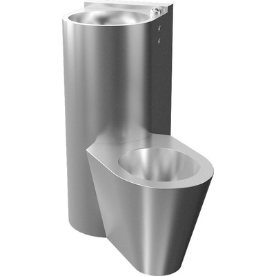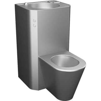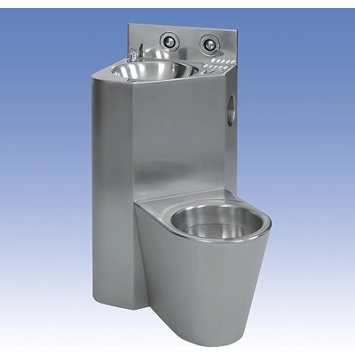 Nerezový kompaktní set WC s umyvadlem antivandalové provedení použití pro věznice kompaktní set WC s umyvadlem a umyvadlovou armaturou tlačný ventil na ovládání umyvadlové armatury tlačný ventil pro splachování WC WC stojící na zemi vpravo vyztužené polyuretanem...