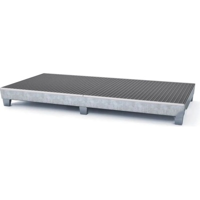 Ocelová zinkovaná záchytná vana pro 2 IBC se záchytným objemem 1000 litrů se dvěma zvýšenými podstavci pro plnění z IBC do menší nádoby. Rozměr 268x125x81 cm, nosnost 4000 kg.
