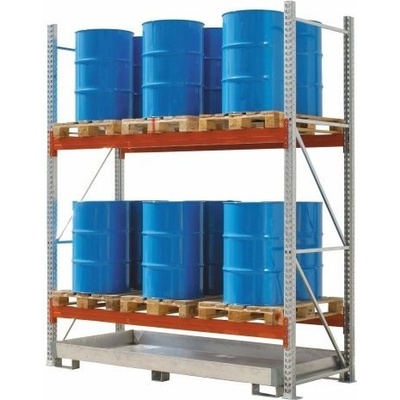 Ocelová lakovaná záchytná vana bez roštu. Záchytná vana pro skladování 200 l sudů nebo menších nádob. Vybaveno pro manipulaci VZV technikou. Záchytná vana musí být při...