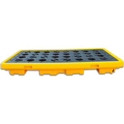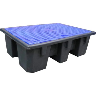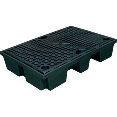 nízká záchytná jímka s plastovým roštem určená pro 2 palety 100% tvrzený polyetylen (chemicky odolný, plně recyklovatelný, UV stabilní) s jímkou nelze manipulovat pomocí...