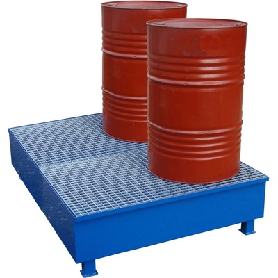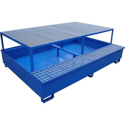 záchytná jímka s roštem pro skladování osmi, max. 200 litrových sudů zabezpečení sudů s nebezpečnou látkou pevná a stabilní konstrukce kovové jímky lakovaná jímka chem....