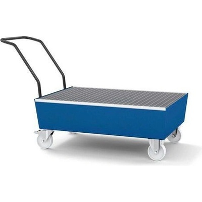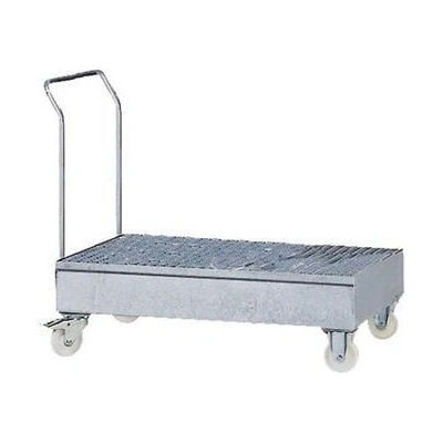 Ocelové retenční vany s roštem pro skladování provozních a hořlavých kapalin.Bez rizika vzniku koroze díky povrchové úpravě.Opatřené nožkami o výšce 10 cm.