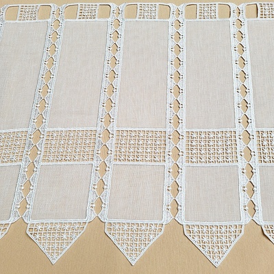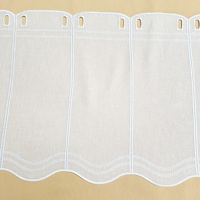 Nádherná záclona na vitrážku, vyšívaná, i když je to 100% polyester, tak působí jako bavlněná. Krásná úprava.