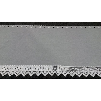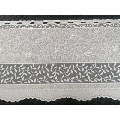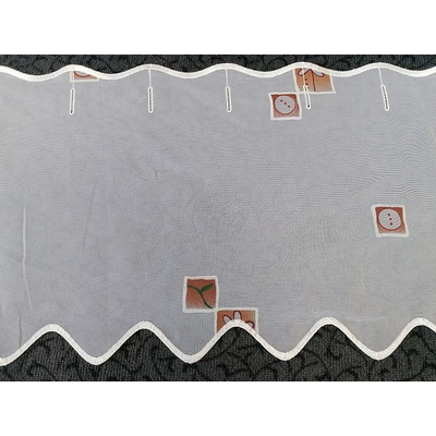 Krásná jednoduchá záclonka na vitrážku. Není nutno zapošívat, protože se stříhá ve vyšitých čarách cca po 16 cm. Materiál přírodního vzhledu s výšivkou.