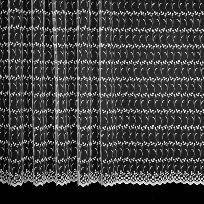 Tylová metrážová záclona v bílé barvě se vzorem vyšívaných oválků spojených vlnkami, zakončená obloučky. Záclona je vyrobena ze 100% polyesteru a je dostupná ve výšce 220cm....