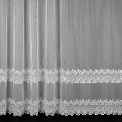 Hotová jemná záclona sablé s žíhaným vzorem (pršíčko) v bílé barvě, zakončená zátěžovým olůvkem. Záclona je vyrobena ze 100% polyesteru ve výšce 120 cm x šířka 200 cm. Záclona...