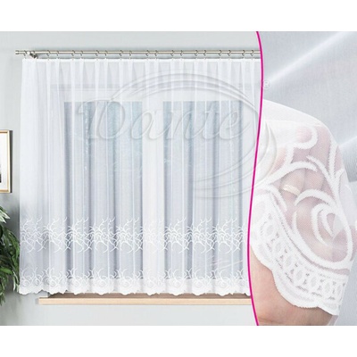 Krásná bílá záclona s kytičkovou bordurou se bude hodit do okna v obývacím pokoji či ložnici. Motiv je umístěn ve spodní a střední části záclony. Spodní lem tvoří obloučky....