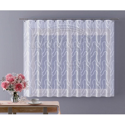 Hotová jemná žakarová záclona s jemným žíháním (pršíčkem) v bílé barvě. Záclona je vyrobena ze 100% polyesteru ve výšce 130 cm x šířka 300 cm. Záclona má z výroby pevné boční...