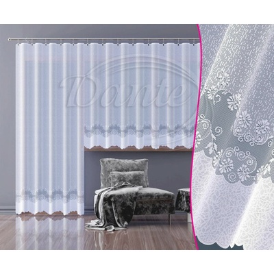Hotová jemná žakárová záclona s krajkovým vzorem ve spodní části záclony, který tvoří hustou borduru v jednobarevné bílé barvě. Záclona je vyrobena ze 100% polyesteru ve výšce...