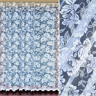 Podrobnosti o produkte Z309620-1 výška 160 cm Bílá metrážová záclona Marcia. Záclona je po celé ploše zdobena květinovým vzorem. Spodní okraj záclony je ukončen obloučky. U...