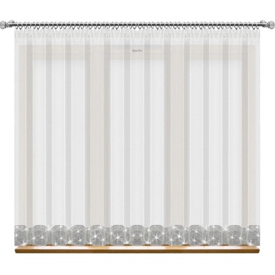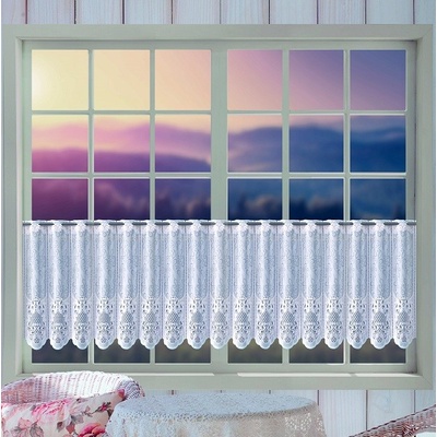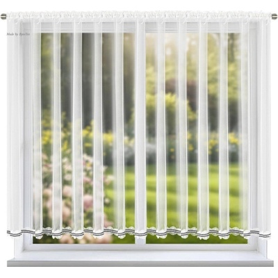Hotová jemná žakárová záclona s krajkovým vzorem ve spodní části záclony, který tvoří hustou borduru v jednobarevné bílé barvě. Záclona je vyrobena ze 100% polyesteru ve výšce...