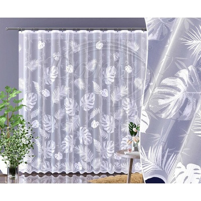 Výrazná žakárová záclona se zajímavým celoplošným vzorem listů monstery a palmy. Spodní okraj záclony tvoří obloučky zakončené bílým lemem. Záclonu můžete použít v soupravě na...