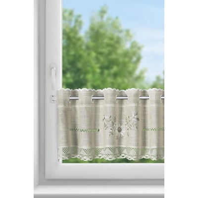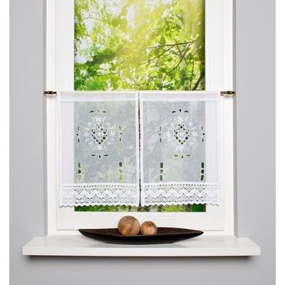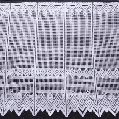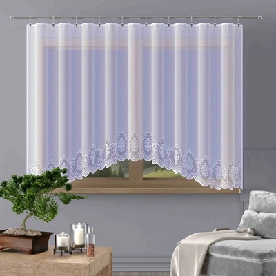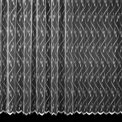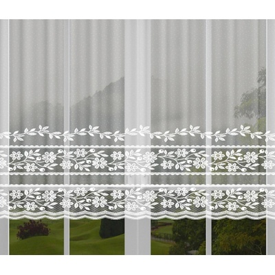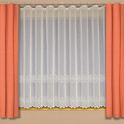 Metrážová tylová záclona se vzorem připomínající plamínky vyšívané po celé ploše v bílé barvě a ve spodní části zakončená hustou bordurou. Záclona je vyrobena ze 100% polyesteru...