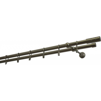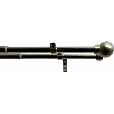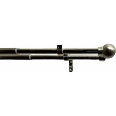 Dvojitá záclonová souprava Koule 16/19 mm. V barevném provedení ušlechtilá ocel. Roztažitelná. Komplet včetně koncovek, nosníků a montážního materiálu. Bez kroužků.