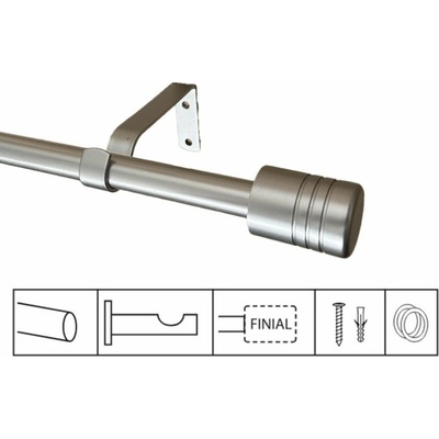Kovová roztažitelná záclonová souprava KRETA Válec 16/19 mm, vzhled ušlechtilé oceli, 120 - 210 cm, včetně kulatých nosníků, koncovek, bez kroužků.