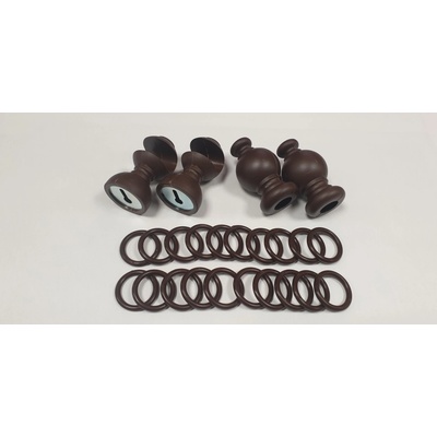 Plastová záclonová souprava obsahuje : 20x kroužek, 2x držák záclonové tyče a krytka záclonové tyče.