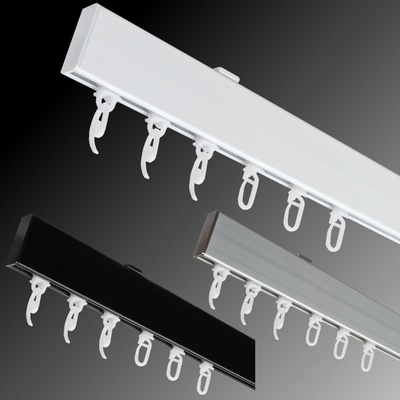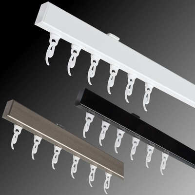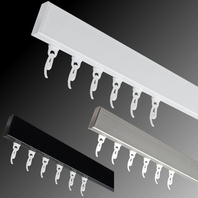 Hliníkové záclonové a závěsové kolejnice AL850 v barvě bílé (RAL 9003), alu (elox) a černé vhodné pro montáž na strop nebo na stěnu. Drážka pro vedení jezdců je umístěna na...