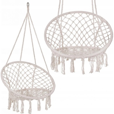 Závěsné houpací křeslo v provensálském stylu. Originální, tkaný tvar, v krémové barvě. Lehká, přesto velmi pevná konstrukce. 2 možnosti montáže. Závěsné třásně v boho stylu,...