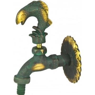 Ozdobný mosazný patinovaný kohoutek k zahradním umyvadlům. Velice pěkný starožitný design. Velká vzdálenost od zdi. Ozdobný mosazný patinovaný kohoutek k zahradním umyvadlům....