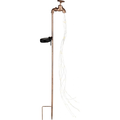 Solární svítidlo kovové zlaté barvy, plast transparentní, vypínač, krokový vypínač, efekt hořícího ohně, LED běžící nebo trvalé svícení, baterie součástí AAA 300mAh, IP44,...