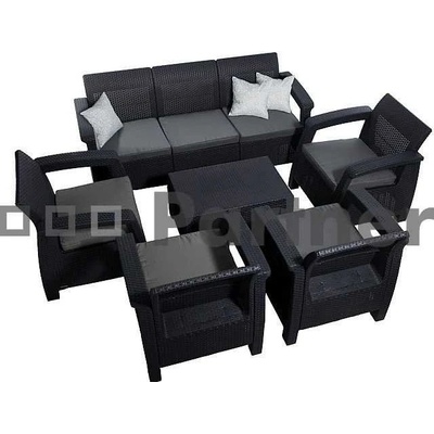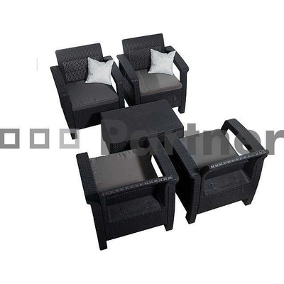 Zahradní ratanový set v módním antracitovém odstínu tvoří obdélníkový stolek a 4 křesla. Je ideální pro 4členné rodiny. Uplatní se i na terasách, v zahrádkách restaurací a v...