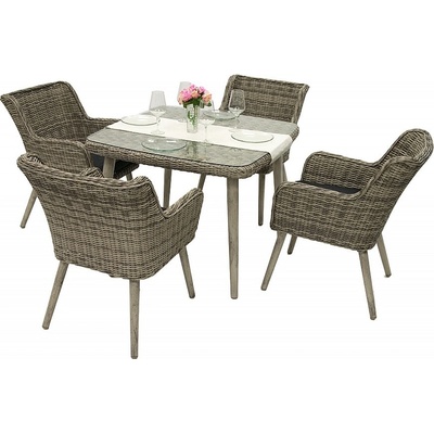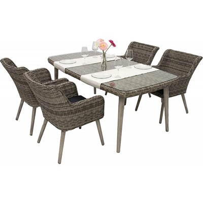 Sestava ideální na zahradní párty a grilovačkyZahradní sestava z ručně tkaného polyratanu, která je odolná vůči povětrnostním vlivům, zahrnuje stůl a čtyři pohodlná zahradní...