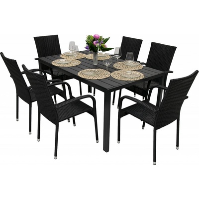 Zahradní polyratanová jídelní sestava Roma | černá Luxusní ratanová souprava přesvědčí nejen elegantním vzhledem, ale i dlouhou životností a odolnosti proti slunci. Tento set...