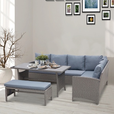 Zahradní polyratanová sestava Sima | modro-šedá Pohodlná zahradní ratanová sestava ke strávení pěkných okamžiků. Ratanová souprava přesvědčí nejen elegantním vzhledem, ale i...