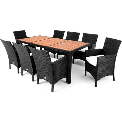 Ratanový set zahradního nábytku sestávající ze stolu, 8 křesel s odnímatelnými poduškami se vyznačuje exkluzivním designem a stane se ústředním bodem vaší zahrady nebo terasy....