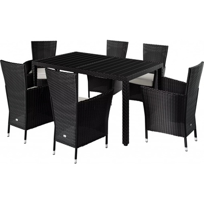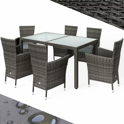 Polyratanový sedací souprava pro 6 osob včetně polštářů - luxusní zahradní nábytek pro váš domov! Sada z polyratanu se skládá z 1 stolu, 6 stohovatelných židlí s 6 odnímatelnými...