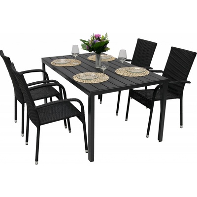Zahradní polyratanová jídelní sestava Riga | černá Luxusní ratanová souprava přesvědčí nejen elegantním vzhledem, ale i dlouhou životností a odolnosti proti slunci. Tento set...