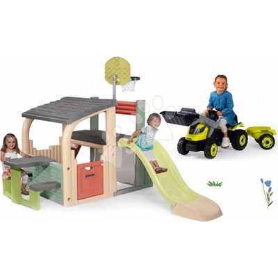 Hrací centrum se skluzavkou a traktor na šlapání s přívěsem a kruhy na házení tvoří perfektní set hraček pro chlapce a dívky od 2 let. Hračky od francouzských značek Smoby a...