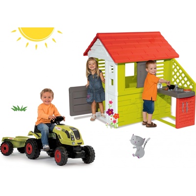 Set hraček Smoby je cenově výhodná sada hraček: domeček Pretty Nature s kuchyňkou a traktor Claas XL. Zahradní domeček a traktor na řetězový pohon tvoří dokonalý celek, se...