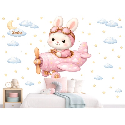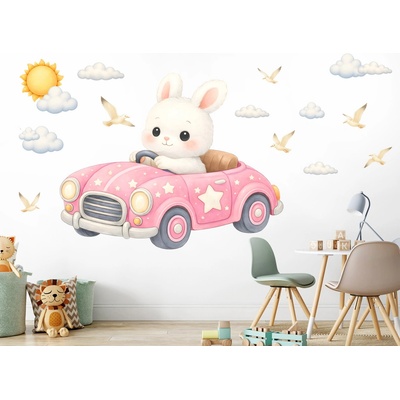 Samolepka na zeď Zajíček v autíčku vnese do dětského pokoje kouzelnou, něžnou a hravou atmosféru plnou fantazie. Roztomilý bílý zajíček jedoucí v růžovém autíčku posetém...