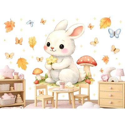 Zajíček z lesa je něžná samolepka na zeď, která vnese do dětského pokoje klidnou lesní atmosféru. Roztomilý zajíček obklopený listím, motýlky a hříbky působí jemně, pohádkově a...