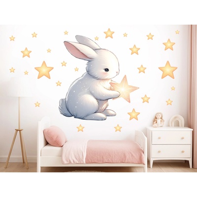 Samolepka na zeď „Zajíček a hvězdičky“ vnese do dětského pokojíčku kouzelnou atmosféru plnou něhy a klidu. Roztomilý bílý zajíček s hebkou srstí držící svítící hvězdu je...