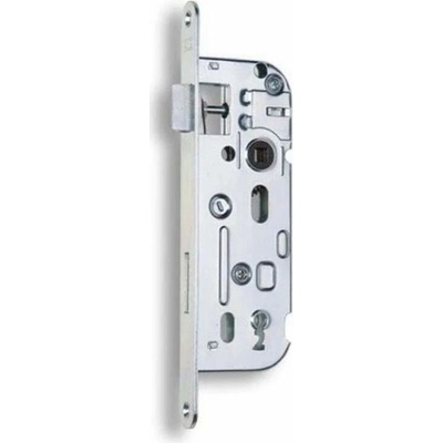 hloubka zadlabání: 60 mm rozteč: 90 mm povrchová úprava: zinek bílý pravolevý dodáván 1 klíč Zadlabací zámek obyčejný 01-15 bez převodu s otvory pro dělené štíty je univerzální na pravé i levé dveře.