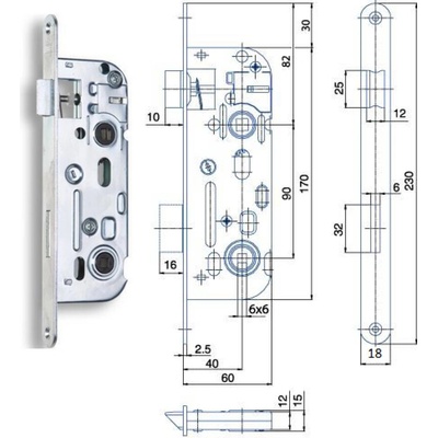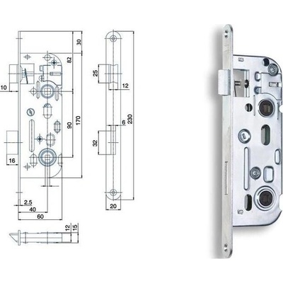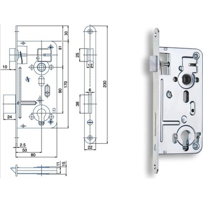 rozteč: 90 mm backset: 40 mm hloubka zádlabu: 60 mm šířka čela: 20 mm povrchová úprava: polochromát jednozápadový, pravo-levý pro jedno i dvoukřídlové dveře, pravé i levé...