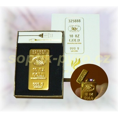 zapalovač piezo - ve tvaru zlaté cihličky s nápisem Credit Suisse (zlaté to samozřejmě není) piezo zapalovač, dva zkřížené výboje větruodolný, bez plnění, dobíjení pomocí...