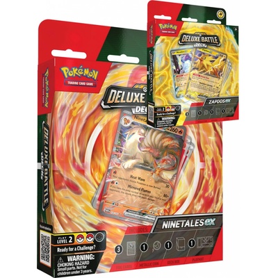 Deluxe Battle Deck s Pokémony Ninetales ex a Zapdos ex! Obsah balení:· 1 balíček o 60 kartách připravený ihned k hraní· 1 herní podložka· 1 set žetonů zranění· 1 velká metalická mince· 2 žetony kondice· 1 krabička· 1 průvdce strategií v anglickém jazyce· přístupový kód...