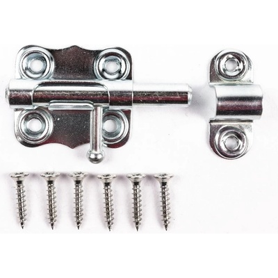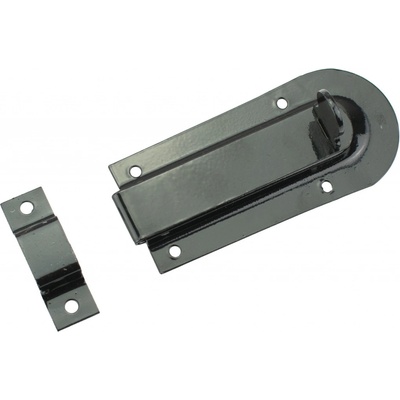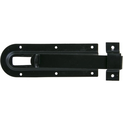 Kovová zástrč s plochým třmenem. Lze využít na uzavírání a zajišťování dveří, dvířek, šuplíků.