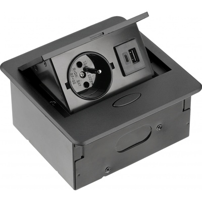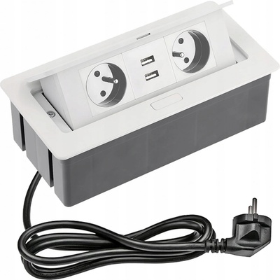 Zásuvka stolní vestavěná s přívodním kabelem 1,5m se zástrčkou, 2x zásuvka s uzemněním a 2x USB 5V/2,1A. Výsuvná zásuvka, která perfektně zapadne do pracovní desky, kuchyně,...