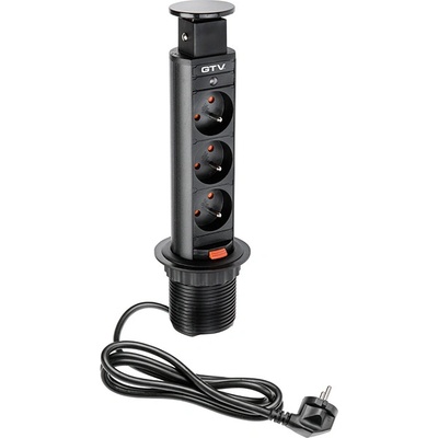 Charakteristika produktu výsuvná zásuvka do kuchyně GTV 3 x 220 V, kabel 1,5m černá - Hmotnost, kg 0,765 - Barva Černá - Materiál Plast/kov - Uzemnění Ano - Délka vodiče se...
