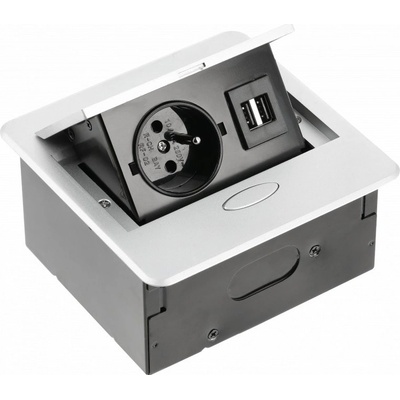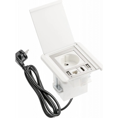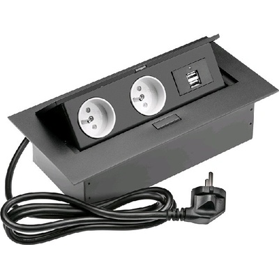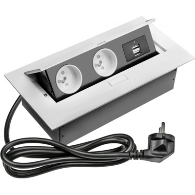 Zásuvka stolní vestavěná s přívodním kabelem 1,5m se zástrčkou, 2x zásuvka s uzemněním a 2x USB 5V/2A. Výsuvná zásuvka, která perfektně zapadne do pracovní desky, kuchyně,...