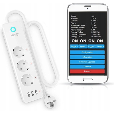 Chytrá napájecí lišta Napájecí lišta Gosund se skládá ze 3 zásuvek USB s výstupním výkonem 15 W (5 V, 3 A) a 3 standardních zásuvek. Všechny vstupy mají integrovanou...
